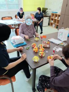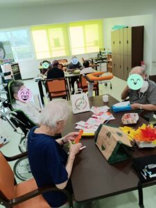 2025年10月12日 秋の日常 星置館 皆様いかがお過ごしでしょうか? 10/31日のハロウィンに向け、協力して装飾を作成しています! 今週、午後のレクではハロウィン福笑いを開催しているんですが、 皆様お上手です! カメラに向かってとびきりのスマイル♪(^^♪ 10/31 ハロウィン・秋の芸術祭開催予定です。 ぜひお越しになってください♪ < 前の記事へ 記事一覧へ >