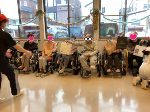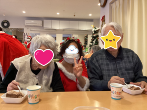 2025年12月31日 北40条館クリスマス会 12月19日北40条館でクリスマス会を開きました 今年は職員のコスプレ?仮装が利用者様に大人気😊 一番人気は副施設長のメイドコス(♂) 今年はチョコレートケーキを皆さんで召し上がってます🎂 サンタさんチームとトナカイさんチームにわかれ プレゼントリレーをしました! プレゼント1個の差でサンタさんチームの勝利👏 職員によるハンドベル演奏も好評でした♪♬♫ < 前の記事へ 記事一覧へ > 次の記事へ >