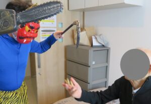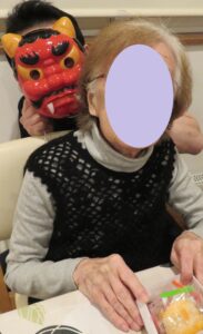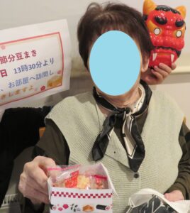 2026年2月21日 もみじ台南館 2月節分&誕生会 もみじ台南館では2月3日に節分の豆まきを行いました。 居室内に登場する鬼目掛けて、皆様「鬼は外」「福は内」と力強く豆をぶつけ無病息災を願いました。 < 前の記事へ 記事一覧へ >